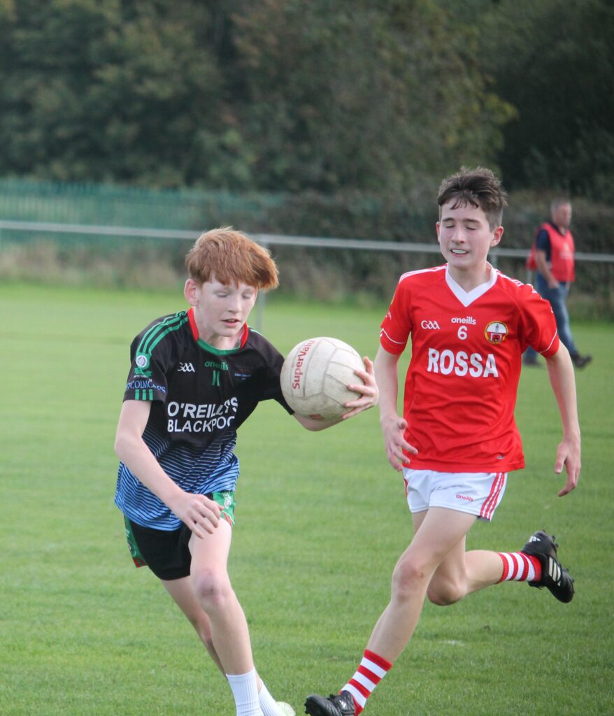 Oisín O’Brien chases the ball down for the under 12s
